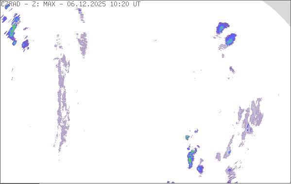 Radarové snímky znázorňují místa, na kterých se vyskytují srážky (přeháňky, bouřky, trvalé srážky). Sledování počasí na území České republiky umožňují dva radary na vrcholech Praha v Brdech a Skalky u Protivanova na Drahanské vrchovině. Dosah radarů je 250 km a jejich provozovatelem je Český hydrometeorologický ústav. Pro odhad intenzity srážek se používají barvy, které vyjadřují hodnotu radarové odrazivosti [dBZ]. Více informací