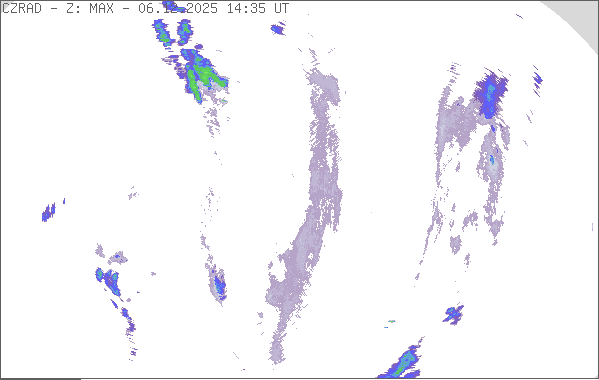 Radarové snímky znázorňují místa, na kterých se vyskytují srážky (přeháňky, bouřky, trvalé srážky). Sledování počasí na území České republiky umožňují dva radary na vrcholech Praha v Brdech a Skalky u Protivanova na Drahanské vrchovině. Dosah radarů je 250 km a jejich provozovatelem je Český hydrometeorologický ústav. Pro odhad intenzity srážek se používají barvy, které vyjadřují hodnotu radarové odrazivosti [dBZ]. Více informací