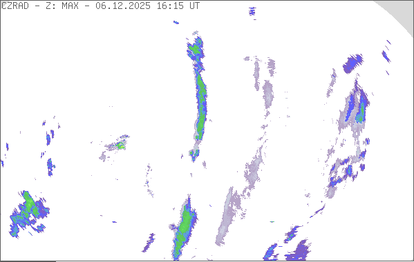 Radarové snímky znázorňují místa, na kterých se vyskytují srážky (přeháňky, bouřky, trvalé srážky). Sledování počasí na území České republiky umožňují dva radary na vrcholech Praha v Brdech a Skalky u Protivanova na Drahanské vrchovině. Dosah radarů je 250 km a jejich provozovatelem je Český hydrometeorologický ústav. Pro odhad intenzity srážek se používají barvy, které vyjadřují hodnotu radarové odrazivosti [dBZ]. Více informací