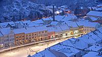 460 mnm / Kraj VysočinaPřímo nad centrem města je mlha a nad ní jasná obloha, vítr Z 2 m/s, tlak 1014,3 hPa, vlhkost 96%