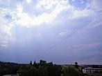...jasné ráno, okolo desáté první obláčky, před polednem srážková oblaka a od jedné odpo více jak dvě hoďky nepřesrážek s ouverturní bouřkou s přívalovým plaváčkem co kanály nestíhaly (pokles teploty z 25 na 19 stupňů)....